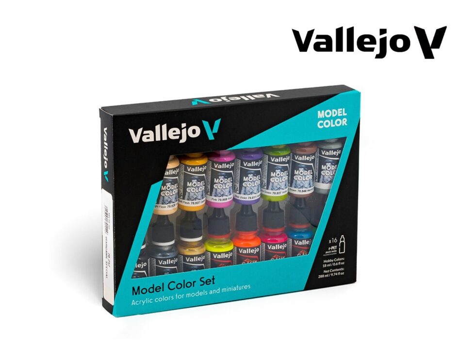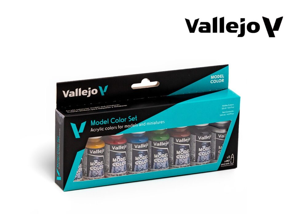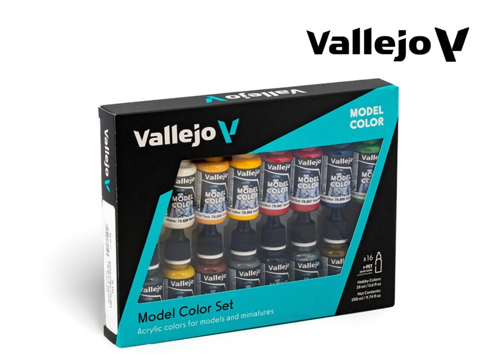 Vallejo Model Color Matt and opaque acrylic paints with highest pigment concentration in a water-based formula, especially developed for brush-on application. For use with an airbrush thin Model Colors with Vallejo Airbrush Thinner to a milky consistency.