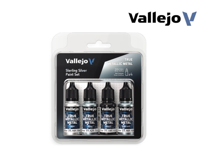 Vallejo True Metallic Metal Paint Kit – Sterling Silver Set (4 x 18ml)