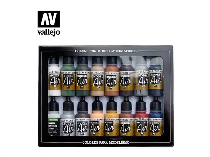 Vallejo Model Air Paint Set – Basic Colors (16 x 18ml)