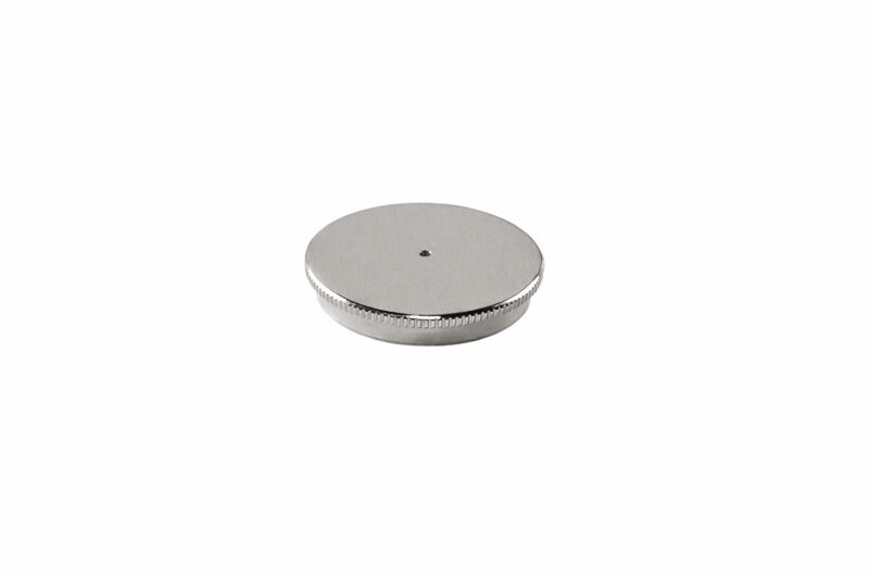 Push-fit nickel-plated lid with ventilation hole designed for Harder & Steenbeck 2 ml paint cups.