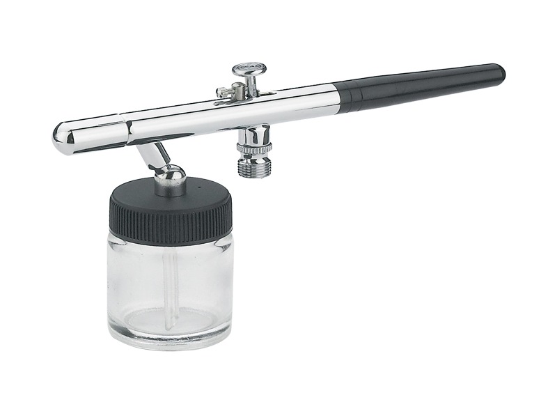 The AB-128 is a suction feed airbrush featuring a double-action trigger for precise control of air and paint flow. Ideal for detailed work as well as medium coverage applications, the suction feed design allows quick colour changes when using additional bottles (sold separately).