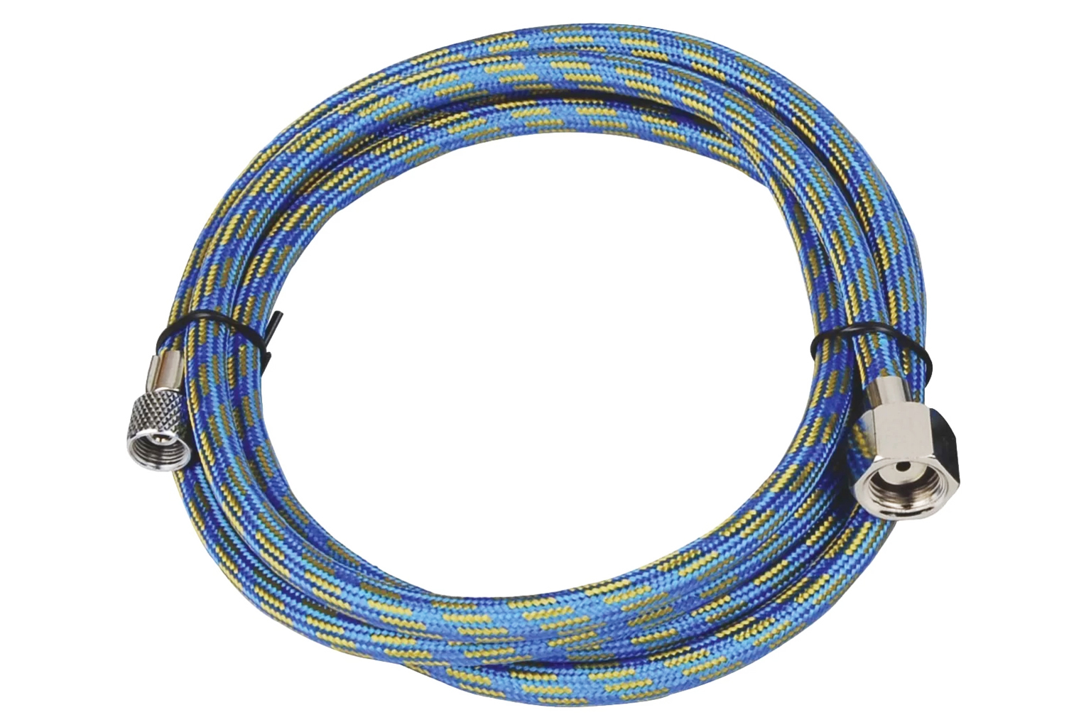 This durable, highly flexible 1.8m blue and yellow braided rubber airbrush hose ensures a reliable, leak-free connection for your airbrush setup.