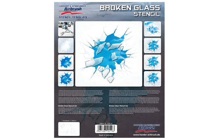 Harder & Steenbeck’s Broken Glass airbrush stencil lets you create striking shattered glass effects with ease and precision.