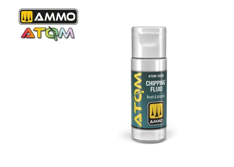 AMMO – ATOM Chipping Fluid lets you easily create incredibly realistic wear, chips, and scratches on any painted surface. You don’t need any special painting skills to achieve fantastic results!