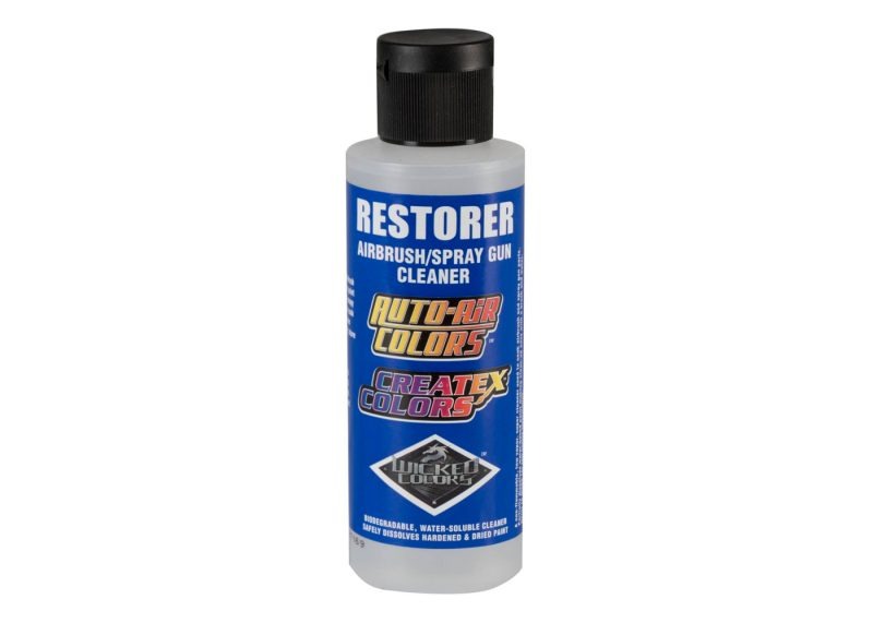 Createx 4008 Restorer is a biodegradable cleaner specifically designed to remove cured paint from your airbrush, spray gun, and other surfaces.