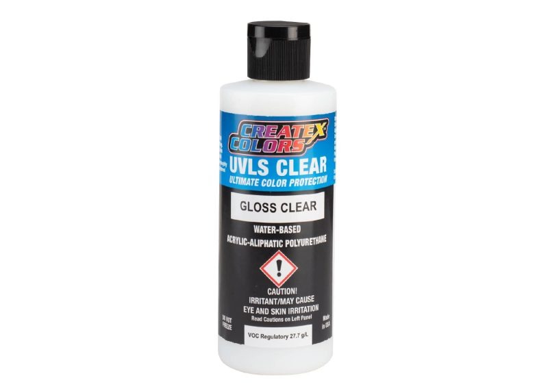 Createx UVLS Clears are durable, water-based, architectural-grade clear coats suitable for both interior and exterior use. Made with an acrylic-aliphatic polyurethane resin, they offer excellent adhesion and won’t yellow over time.