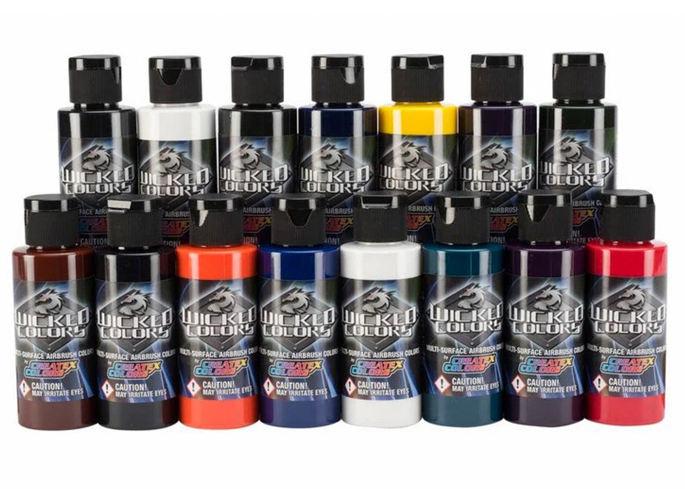 This set of Wicked Detail Airbrush Colors contains water-based, multi-surface acrylic paints that are perfect for any airbrush or spray-gun project. Heavily saturated with transparent, lightfast pigments and a durable resin, these paints are suitable for both interior and exterior use (exterior applications require a top clear coat, such as UVLS Clears).