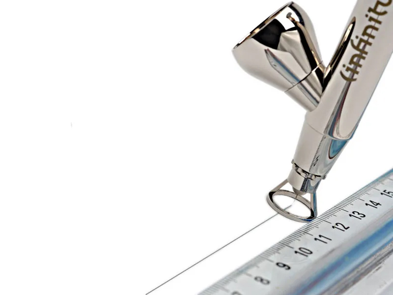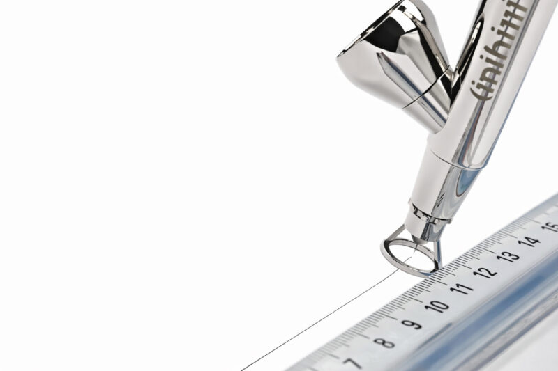 The Harder & Steenbeck Distance Cap is a precision replacement for the standard needle cap on airbrushes fitted with “FineLine” air caps. It allows for consistent line application directly onto smooth, flat surfaces, with the forward end of the cap resting gently on the painting surface for stability and control.