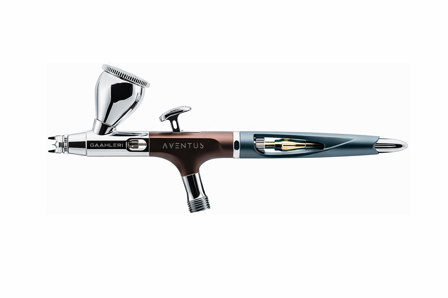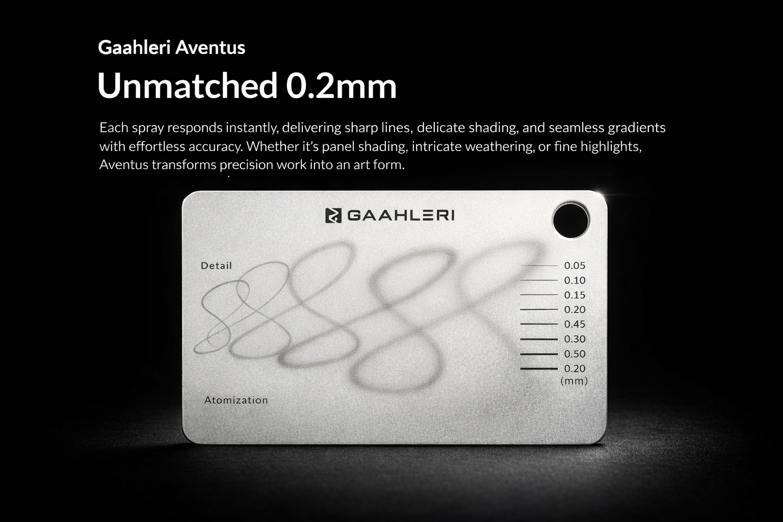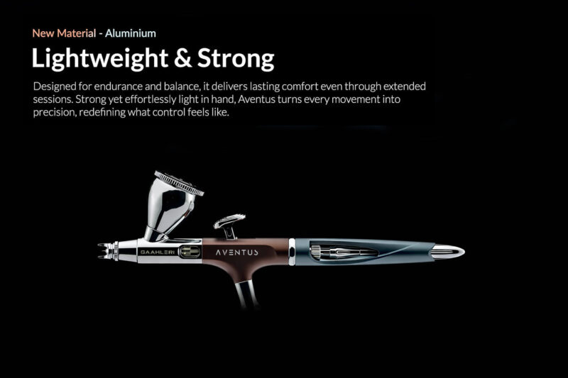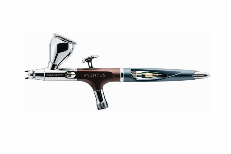 The Aventus features a patent-pending vortex nozzle system that channels airflow in a controlled spiral, delivering finer atomisation and smoother, more consistent spray patterns even at lower pressures. Whether you’re working on ultra-fine detail or broad base coats, this dual-calibre airbrush delivers the control you need.