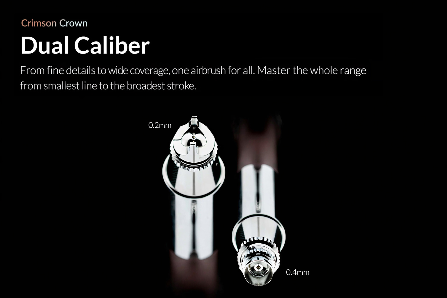 • Dual-calibre airbrush with 0.2 mm and 0.4 mm nozzles for both fine detail and smooth base coats.