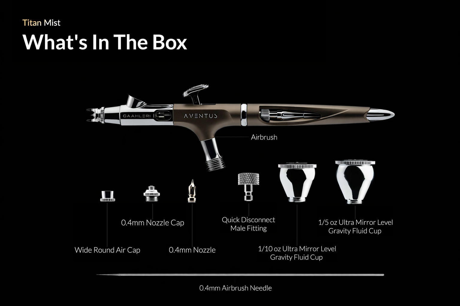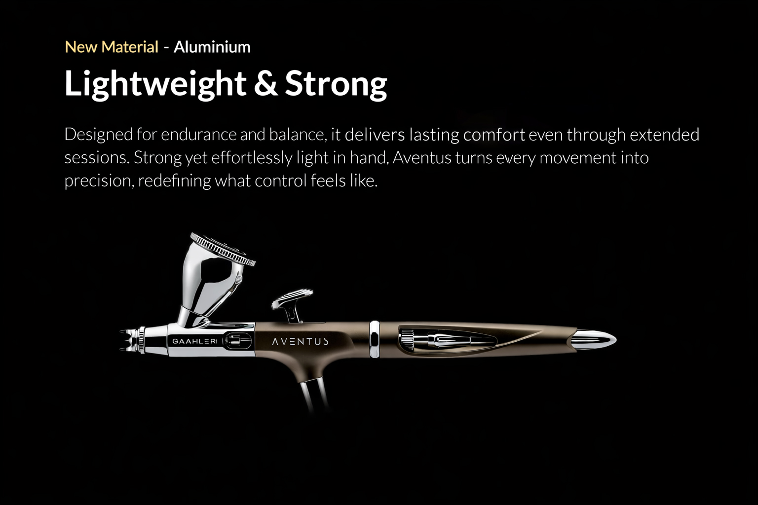 Elevate your airbrushing with the Aventus Titan Mist, a next-generation airbrush engineered from the ground up for precision, comfort, and performance. Designed with a breakthrough modular body and refined ergonomics, the Aventus redefines what a premium airbrush should feel like — balanced, responsive, and built for every painting challenge