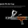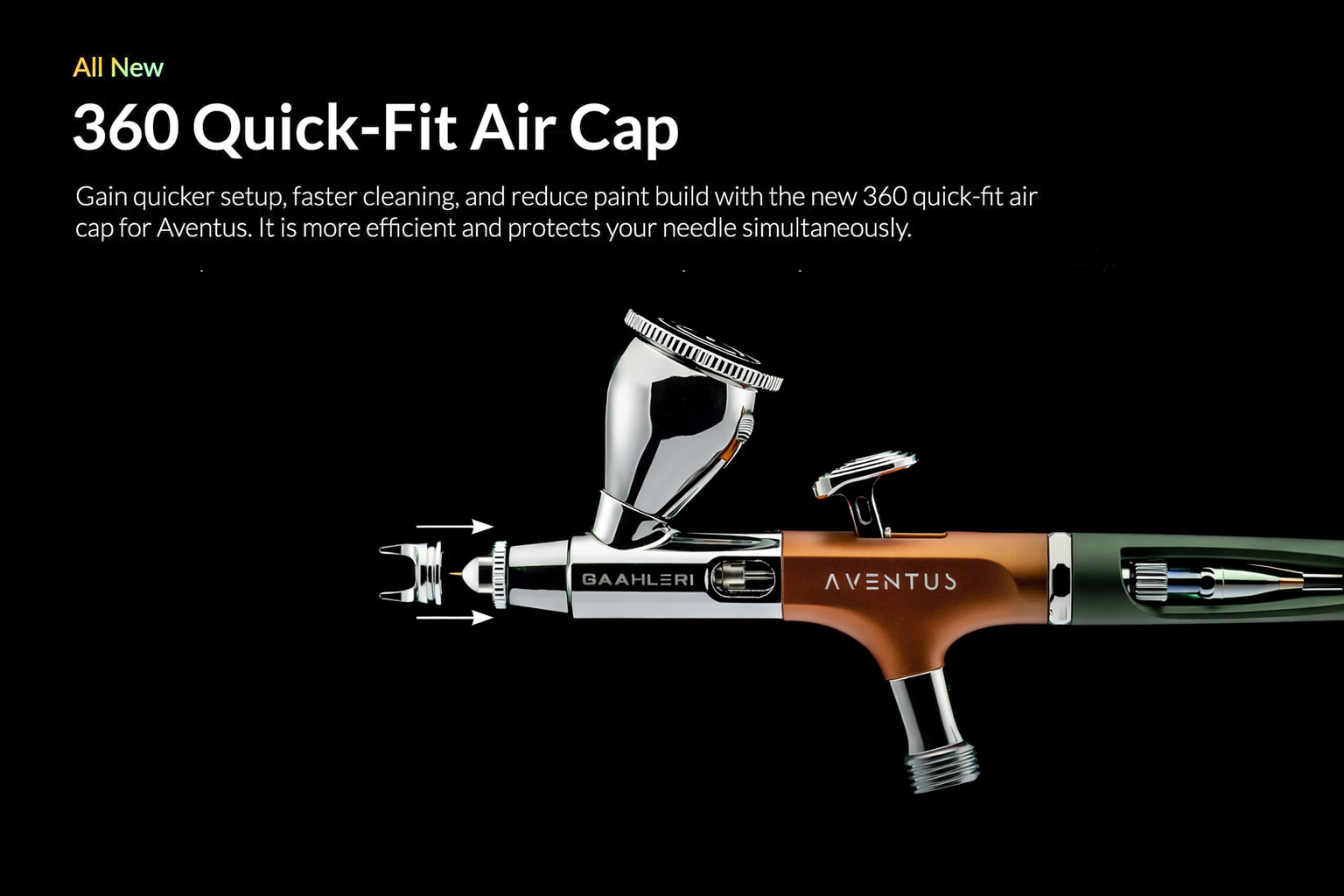 The all-new 360 Quick-Fit air cap system simplifies setup and cleaning, reduces paint buildup, and helps protect the needle for longer life and reliability.