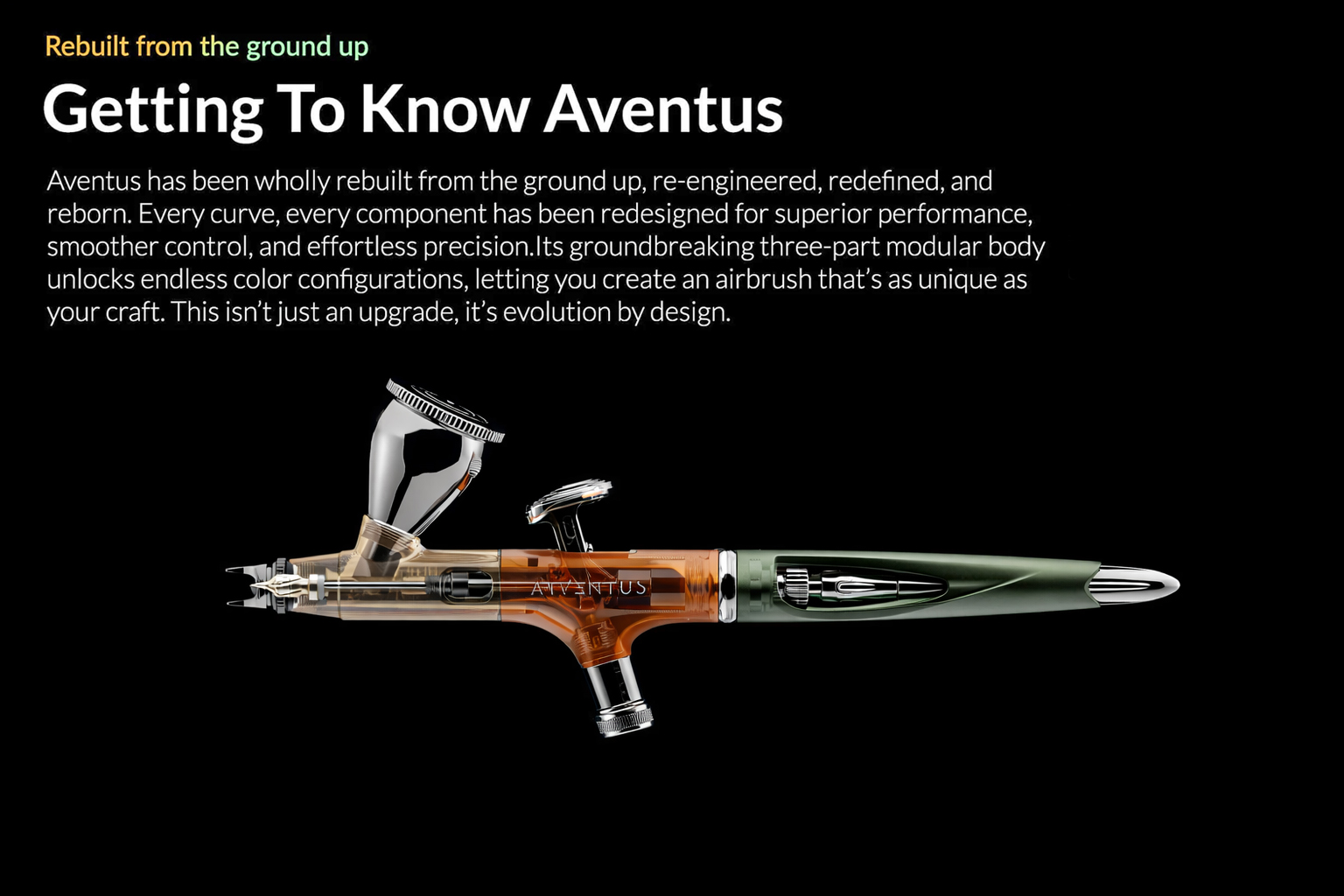 Elevate your airbrushing with the Aventus Verdant Ember, a next-generation airbrush engineered from the ground up for precision, comfort, and performance. Designed with a breakthrough modular body and refined ergonomics, the Aventus redefines what a premium airbrush should feel like — balanced, responsive, and built for every painting challenge