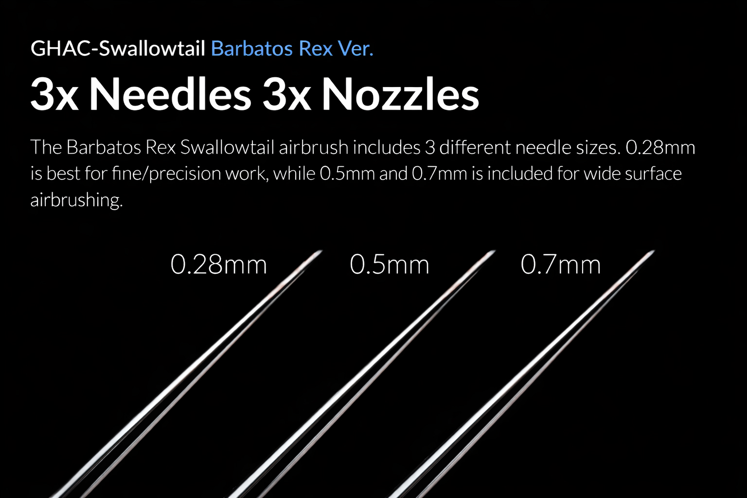 - Triple Nozzle Set-Up: The Swallowtail comes with three high-durability needle/nozzle combinations for extensive flexibility: