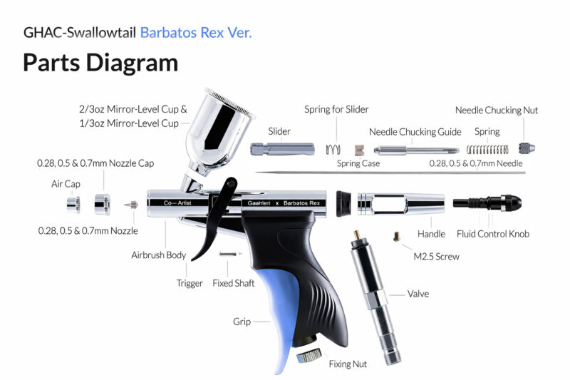 The Gaahleri Ace Series GHAD-Swallowtail is an airbrush gun that combines excellent spraying performance with an ergonomically comfortable grip, perfect for extended airbrushing sessions.
