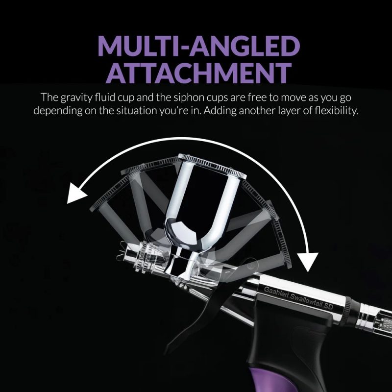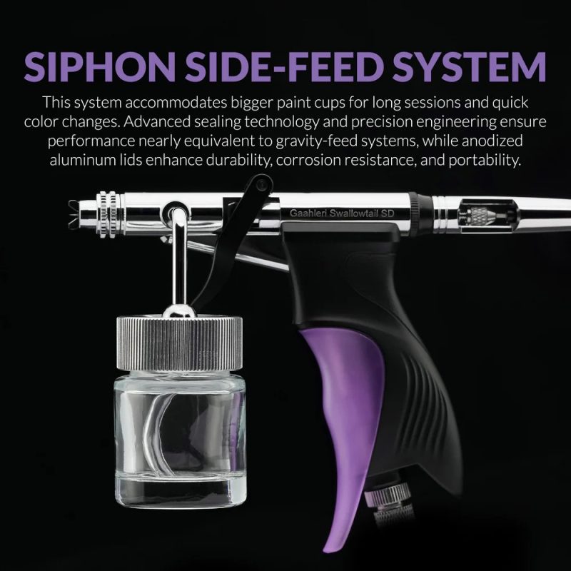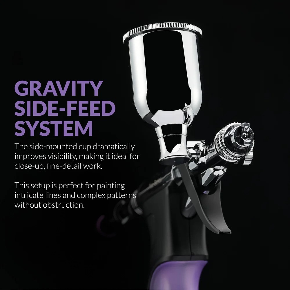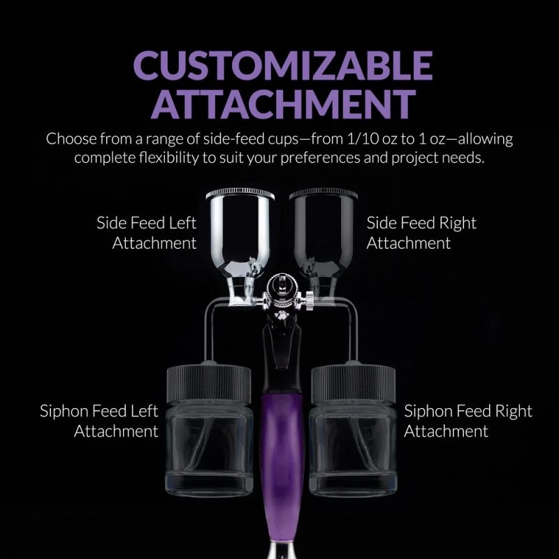 A precision-engineered airbrush side-feed built for both professional artists and hobbyists, offering unmatched versatility and control.