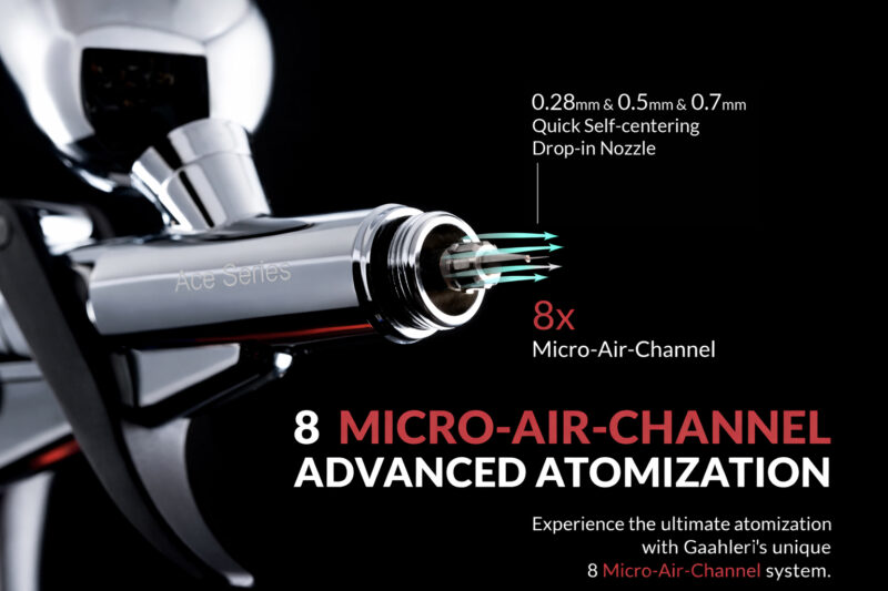 The Gaahleri Ace Series GHAD-Swallowtail is an airbrush gun designed to offer a balance of excellent spraying performance and an ergonomically comfortable grip, suitable for extended airbrushing sessions.