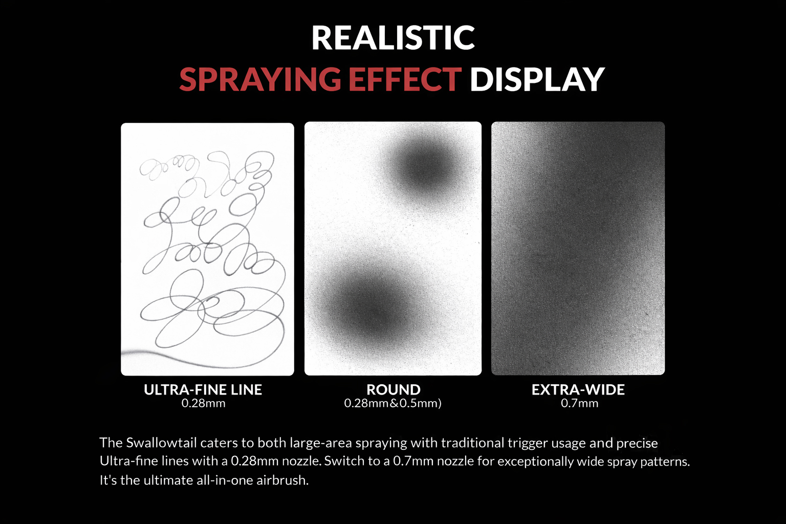 - 0.7mm: Perfect for large-area spraying and thicker paints. This provides extensive flexibility for all types of airbrushing tasks.