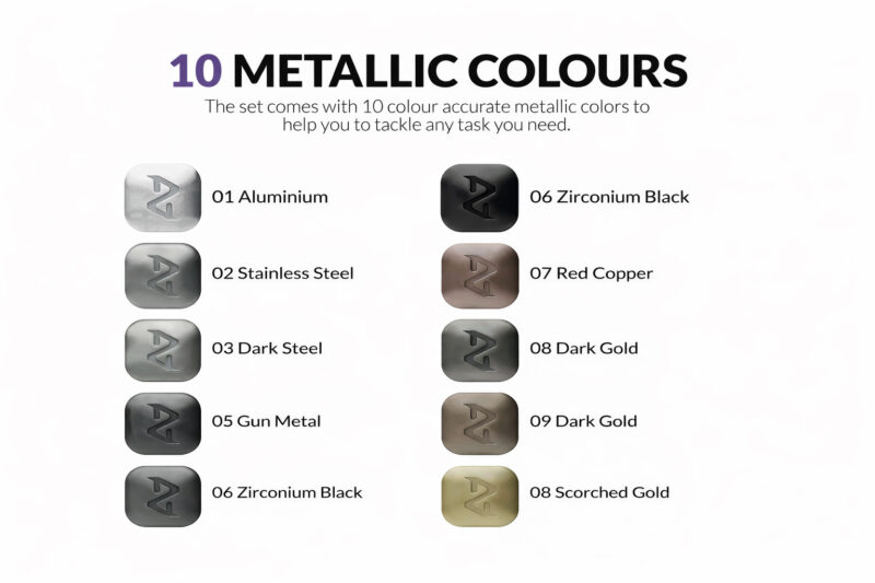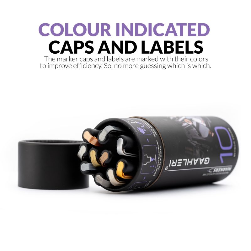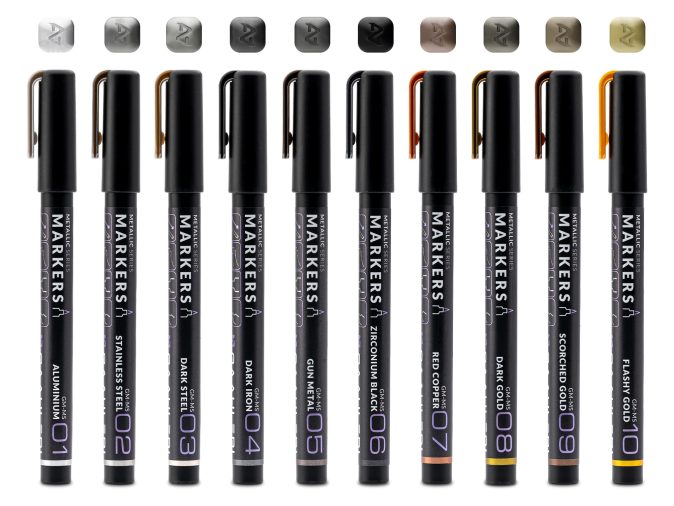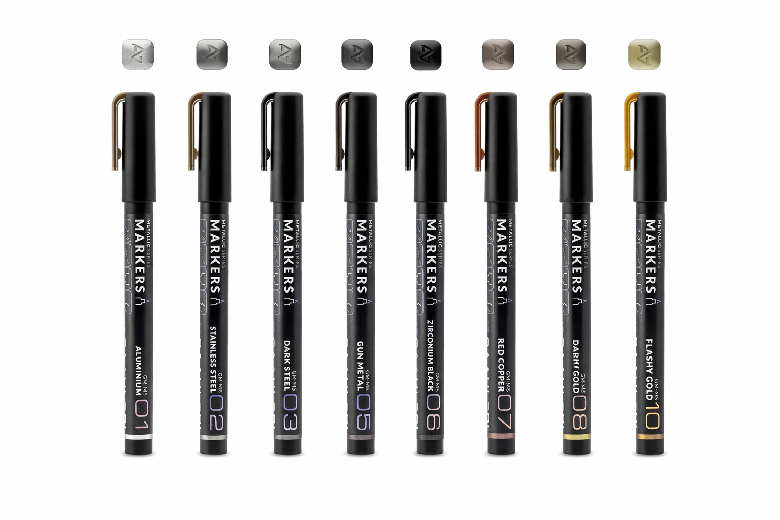 The Gaahleri Metallic Marker Set is the perfect choice for artists, model makers, and hobbyists who want precise, high-quality metallic finishes. Designed for accuracy and ease of use, this premium set includes 10 expertly formulated metallic colours, ideal for a wide variety of creative applications.