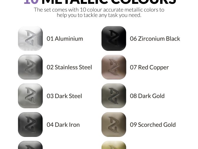 This versatile palette covers everything from subtle metal sheens to rich, dramatic highlights.