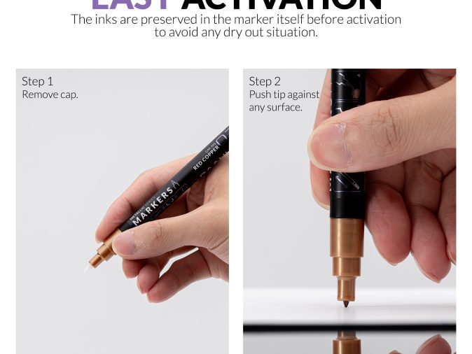 The ink stays sealed until you press the tip, preventing premature drying. Your markers stay fresh and ready when you need them.