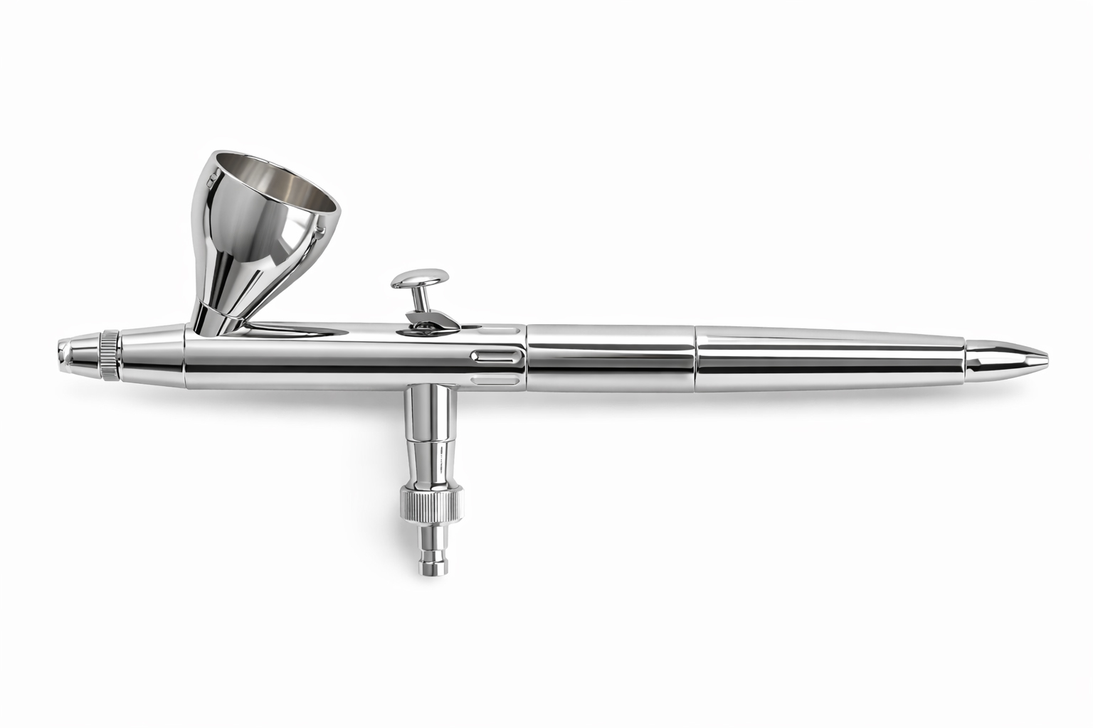 The silver-coloured metal tube simply screws between the airbrush body and the standard handle. An additional extension sleeve is included to accommodate Quickfix and paint volume control systems, making it ideal for models such as the Evolution Silverline or Infinity. The sleeve slides over the adjusting screw, which then attaches to the handle for a secure fit.