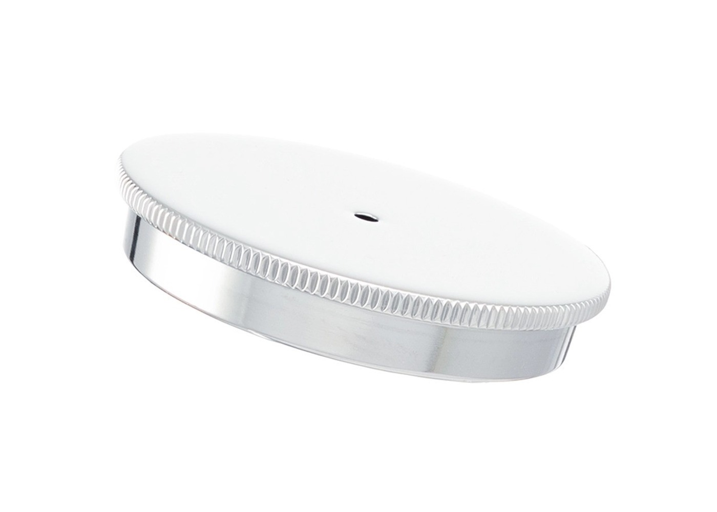 This is a replacement 5ml Gravity Cup Chrome Lid featuring a ventilation hole, designed for the Harder & Steenbeck Evolution CRplus 2024 Airbrush.