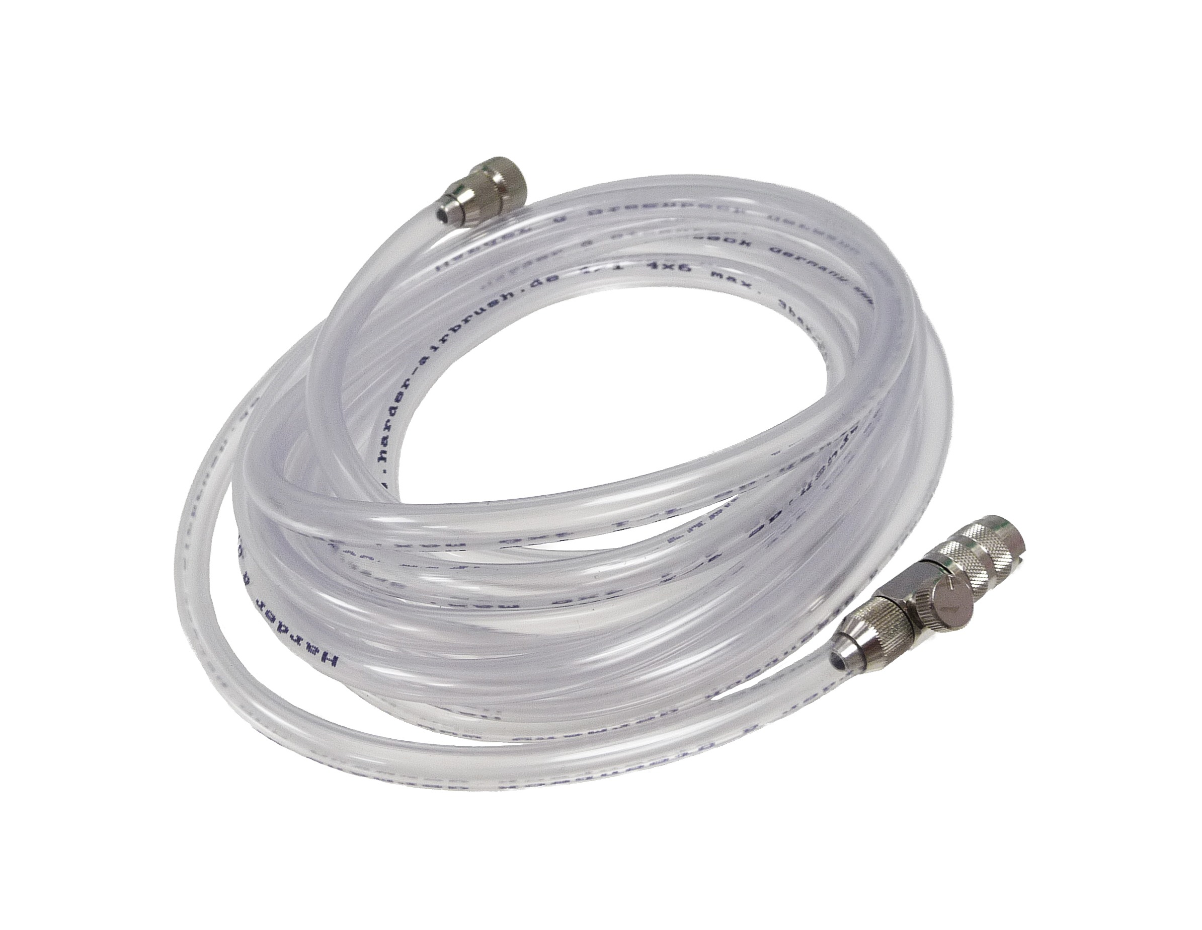 This 2.5-metre clear airbrush hose connects any compressor with a 1/8 BSP (9mm diameter) outlet to Harder & Steenbeck airbrushes or any airbrush fitted with a Quick Release Tail.