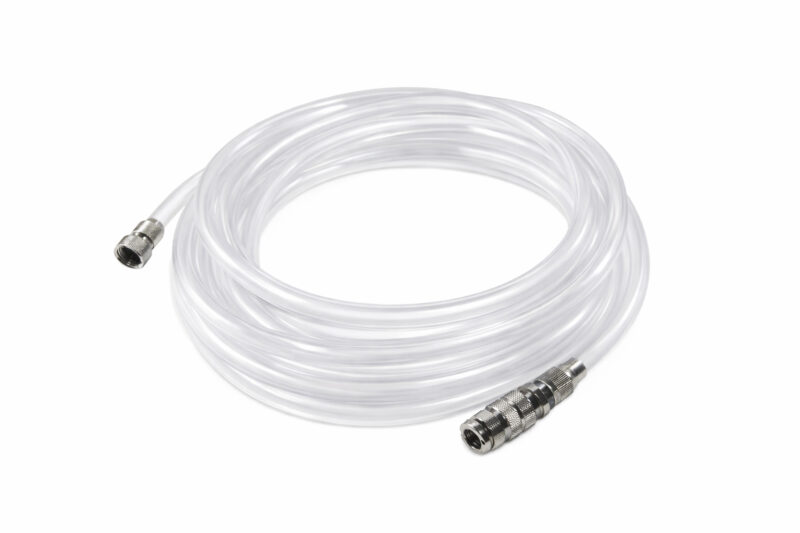 This 2.5-metre clear airbrush hose features a 1/8 BSP (9mm) female connection and a built-in Quick Release Coupling, allowing fast and secure attachment to Harder & Steenbeck airbrushes or any airbrush fitted with a Quick Release Tail.