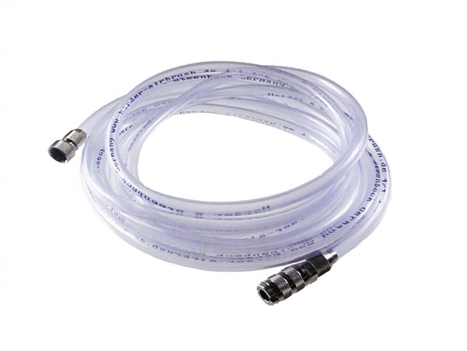 This 2.5-metre clear airbrush hose features a 1/8 BSP (9mm) female connection and a built-in Quick Release Coupling, allowing fast and secure attachment to Harder & Steenbeck airbrushes or any airbrush fitted with a Quick Release Tail.