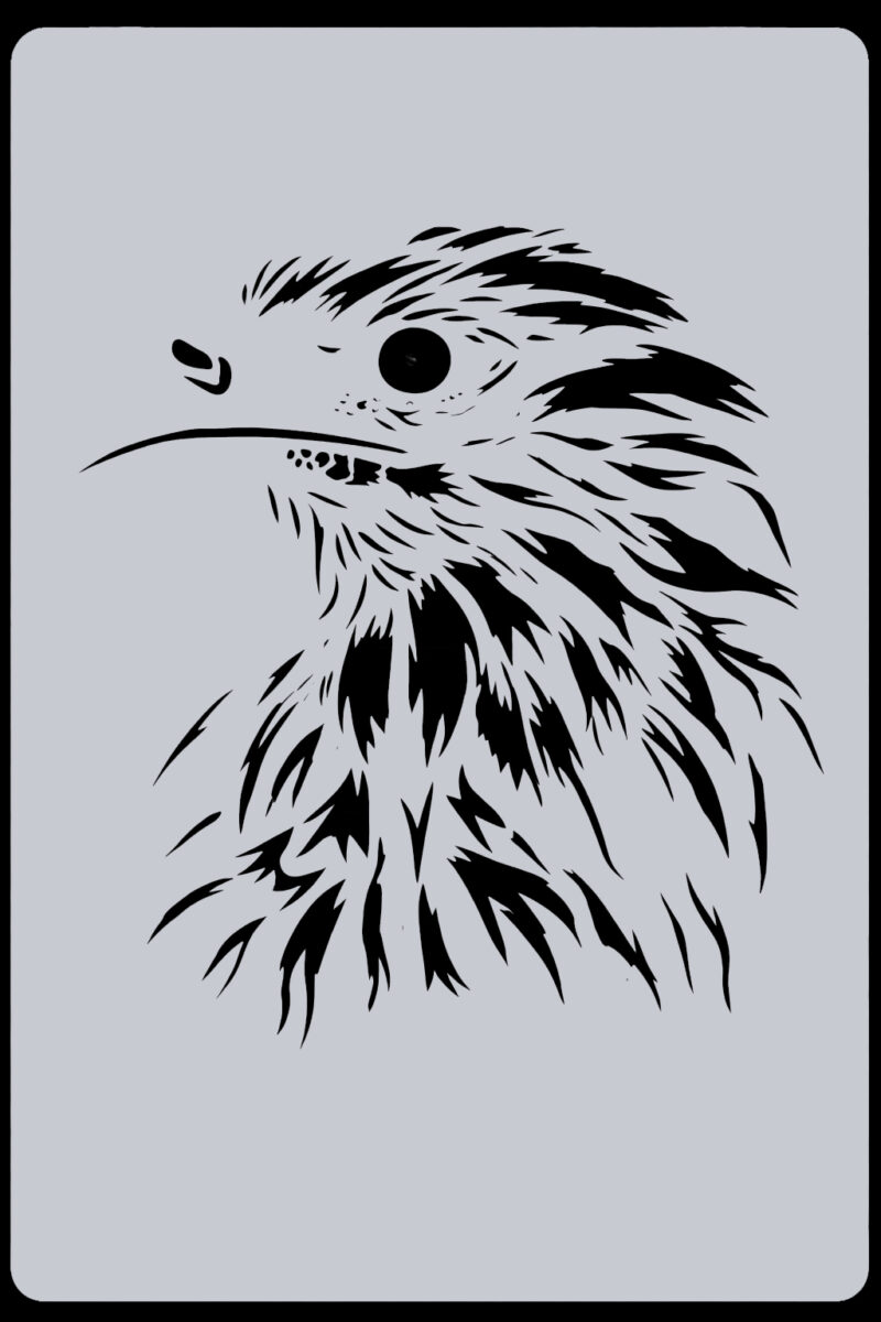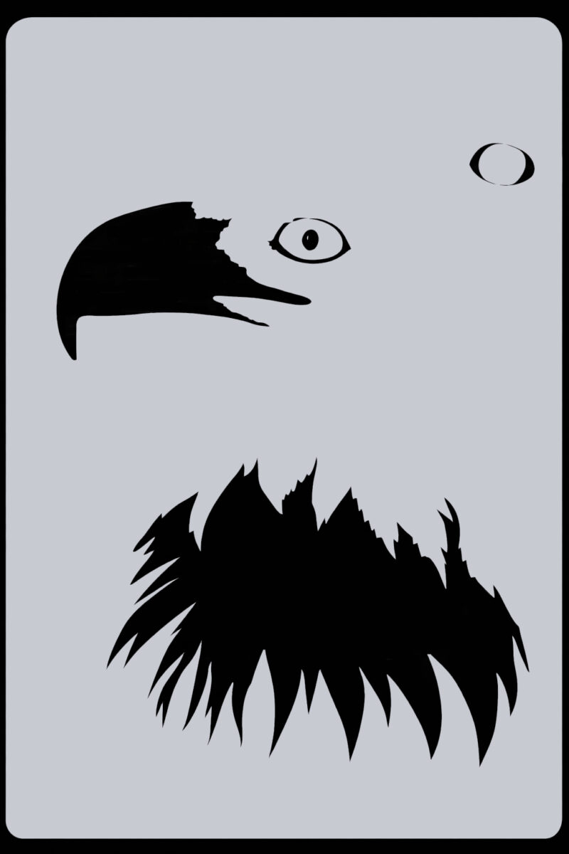 - Layered Design for Realism: Stencil 1 creates the outline and background, stencil 2 adds the beak, eye and initial plumage, and stencil 3 completes the full eagle profile.
