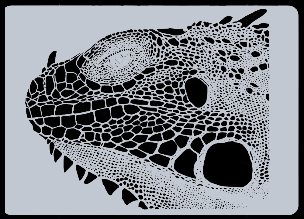 • The Harder & Steenbeck Iguana Wildlife stencil is a highly detailed, one-piece, A4-sized template designed to easily recreate the full head of a lifelike iguana.