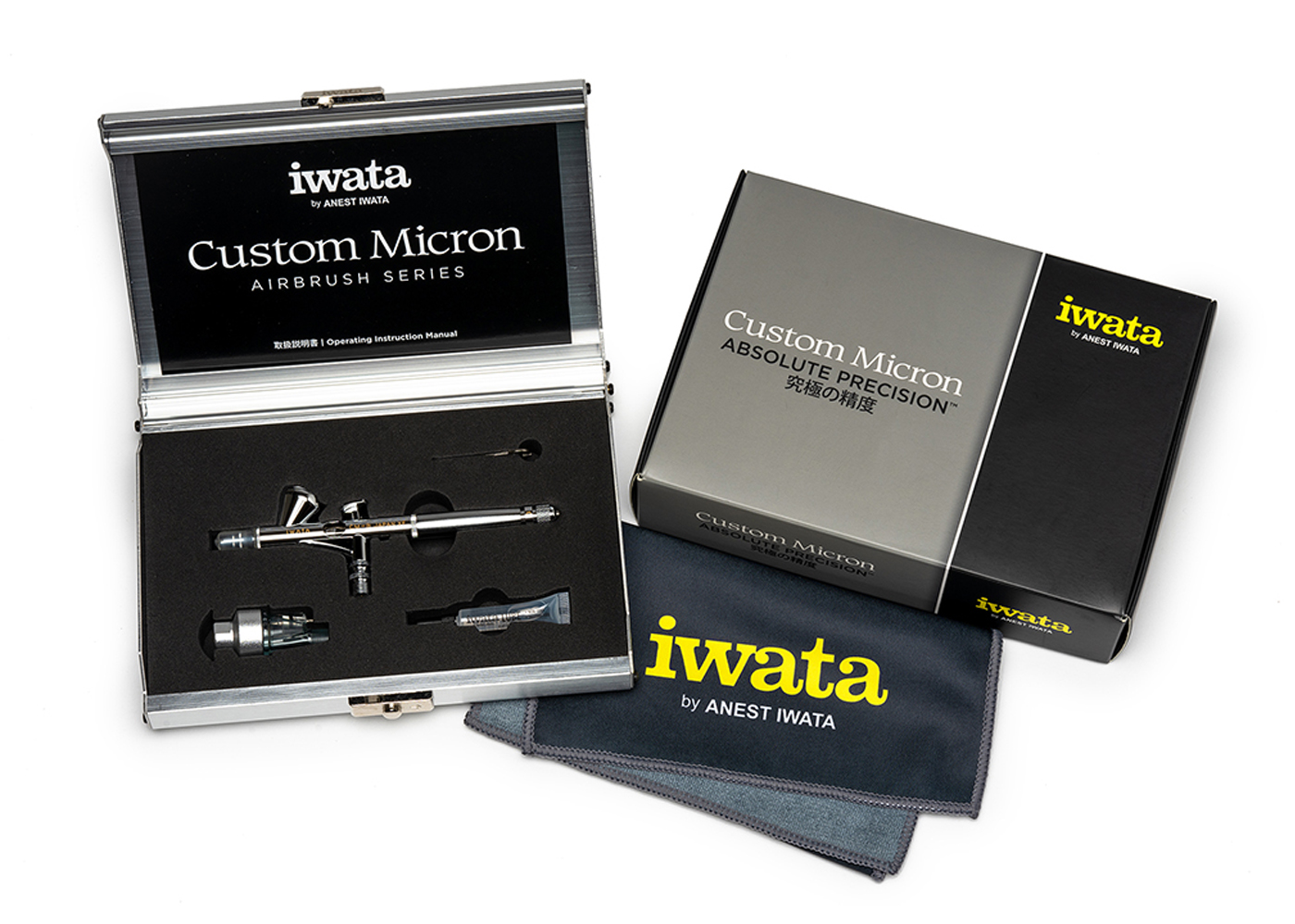 To ensure peak performance, the CM-B comes with Iwata Lube for smooth operation and an Iwata Pistol-grip filter to provide clean, dry air. An Iwata Nozzle Spanner is included for maintenance, with the option to purchase the Iwata Nozzle Wrench for even easier handling. This premium airbrush is housed in a durable aluminium storage case, completing a truly exceptional airbrushing experience.
