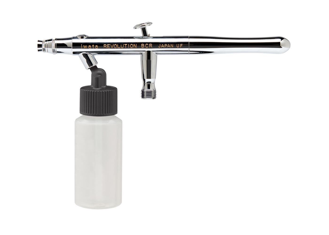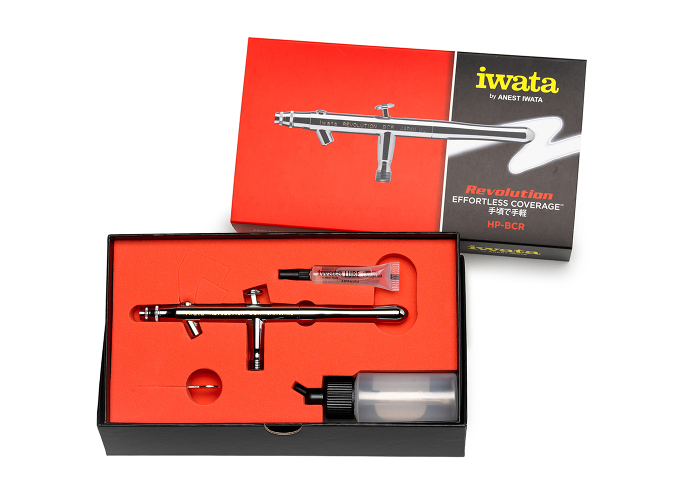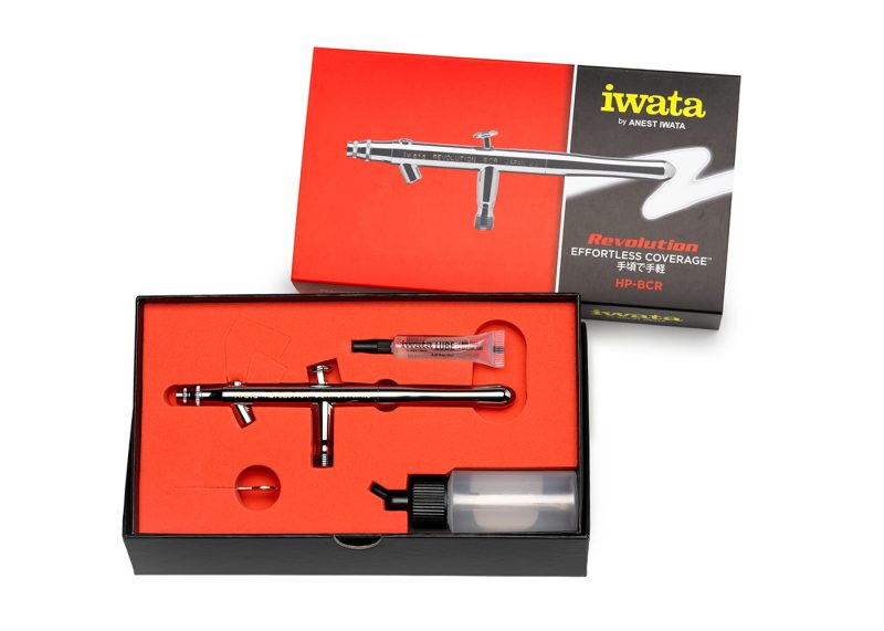 The Iwata Revolution BCR Siphon-Feed Dual-Action Airbrush—exclusive to the Revolution Series—combines high-volume paint capacity with the precision of dual-action control, making it ideal for larger projects and fast colour changes.