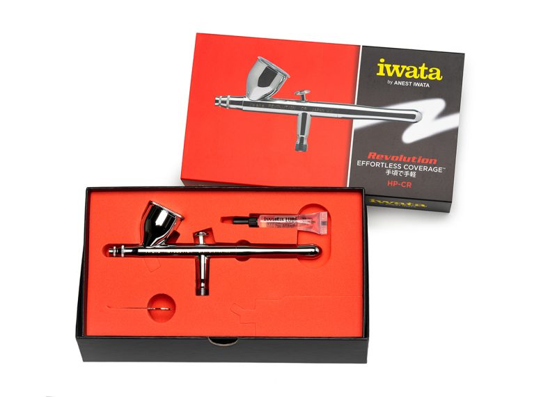 The Iwata Revolution CR Gravity-Feed Dual-Action Airbrush offers a perfect blend of comfort and performance, making it a standout in the Revolution Series. Designed for versatility, it handles a wide range of projects with ease and precision.