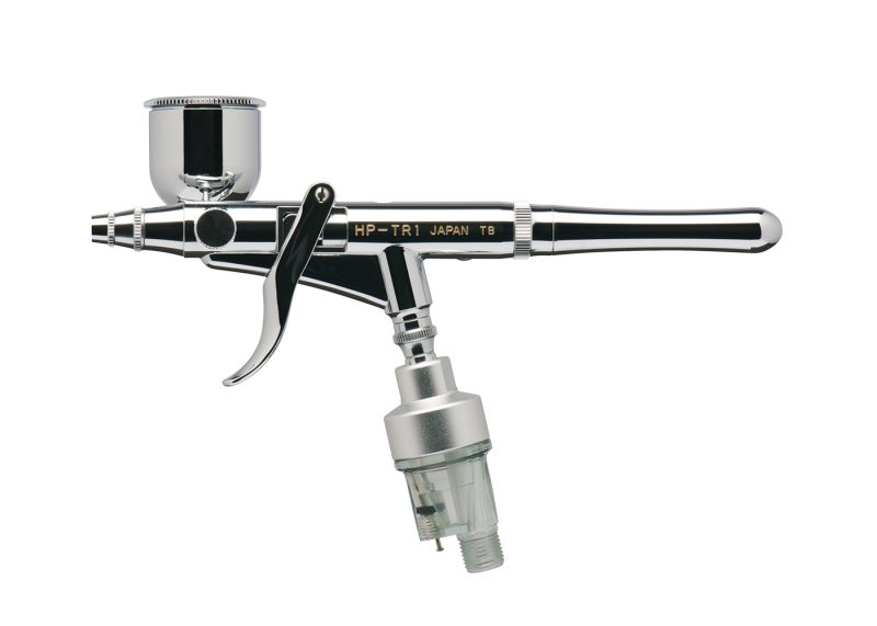 The 0.24 oz (7 ml) fluid cup with lid is perfectly sized for efficient colour mixing and manageable paint volumes. Engineered to perform at low air pressures, the TR1 delivers smooth atomisation and consistent coverage—while remaining compatible with compact air compressors.
