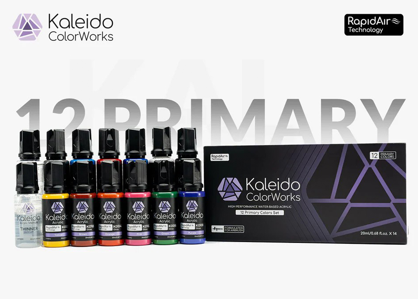 The Kaleido ColorWorks RapidAir Series from Gaahleri is a premium, water-based acrylic paint engineered for superior airbrushing performance. Its formula is eco-friendly, non-toxic, and solvent-free, coming factory pre-thinned for immediate use.