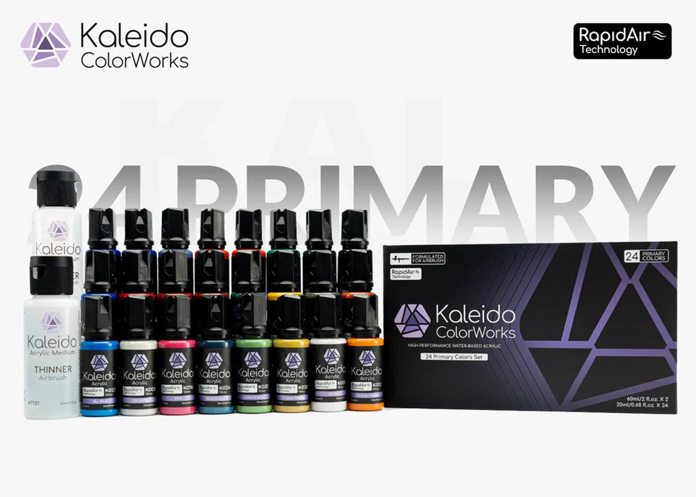 The Kaleido ColorWorks RapidAir Series from Gaahleri is a premium, water-based acrylic paint engineered for superior airbrushing performance. Its formula is eco-friendly, non-toxic, and solvent-free, coming factory pre-thinned for immediate use.