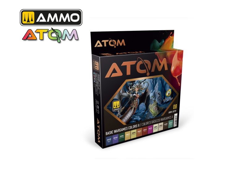 The AMMO by MIG Jimenez – ATOM Basic Wargames Colors II Set includes twelve specially selected ATOM acrylic paints to help you paint your miniatures quickly and easily.