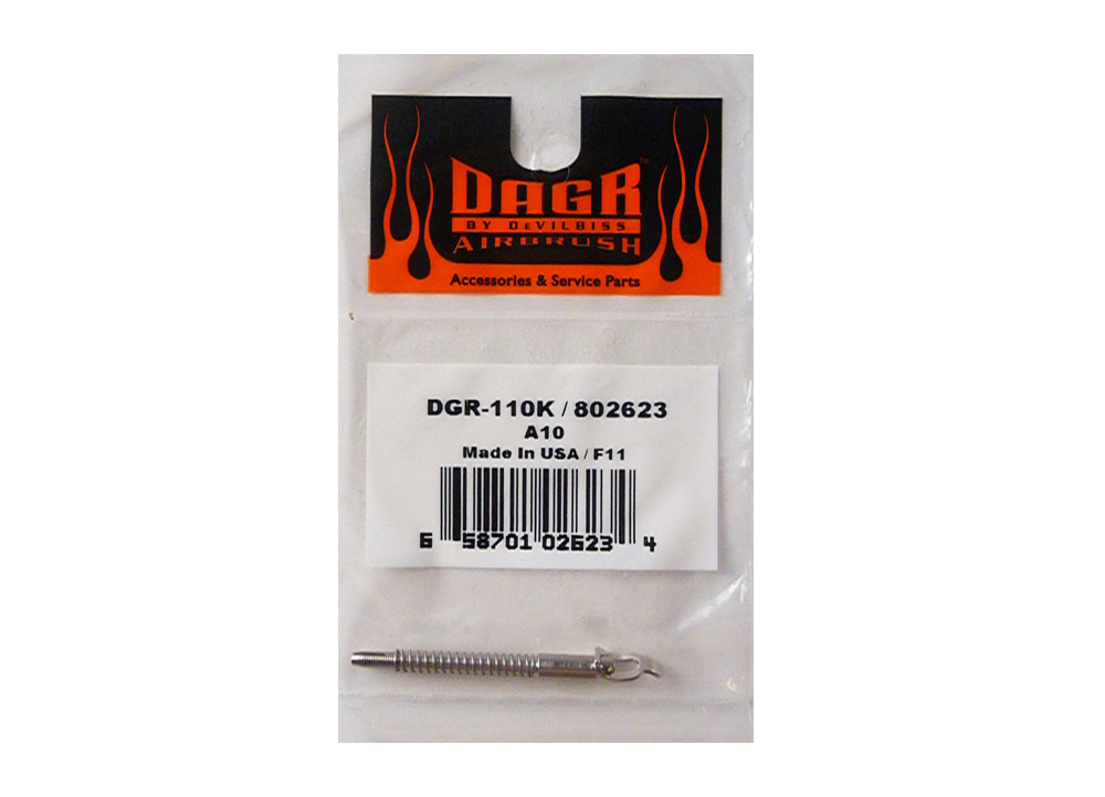 This genuine DeVilbiss DAGR Needle Guide, Rocker & Spring Set is a complete replacement assembly designed to restore smooth and responsive trigger control in your DAGR airbrush.