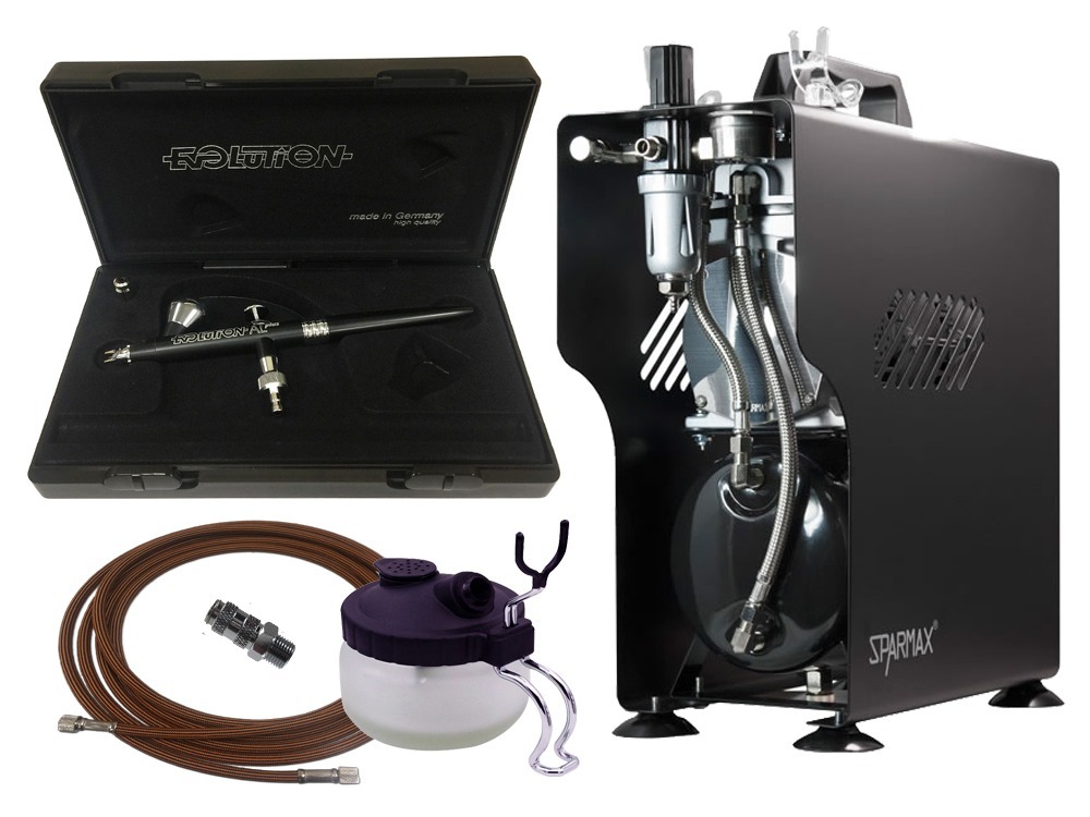 This professional-grade kit combines the performance and reliability of the Sparmax 610H Plus compressor with the lightweight, ergonomic Harder & Steenbeck Evolution ALplus 0.2mm airbrush. Ideal for beginners and professional artists alike, it is perfect for fine detail work in illustration, custom automotive painting, and scale modelling.