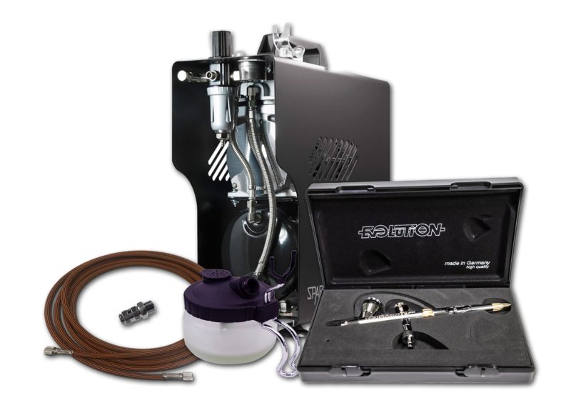 • This professional airbrushing kit combines the reliable Sparmax 610H Plus compressor with the redesigned Evolution 2024 CRplus airbrush for all artists.