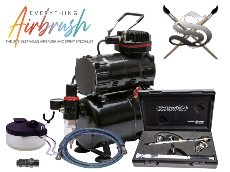 This complete kit pairs the redesigned Harder & Steenbeck Evolution CRplus 2024 2 in 1 airbrush with the TC-80T mini piston compressor, braided hose, quick-release connections, and cleaning pot. With two interchangeable nozzle sizes, a lightweight ergonomic design, and a powerful compressor, it’s the perfect setup for hobbyists and professionals who demand precision, reliability, and creative flexibility.