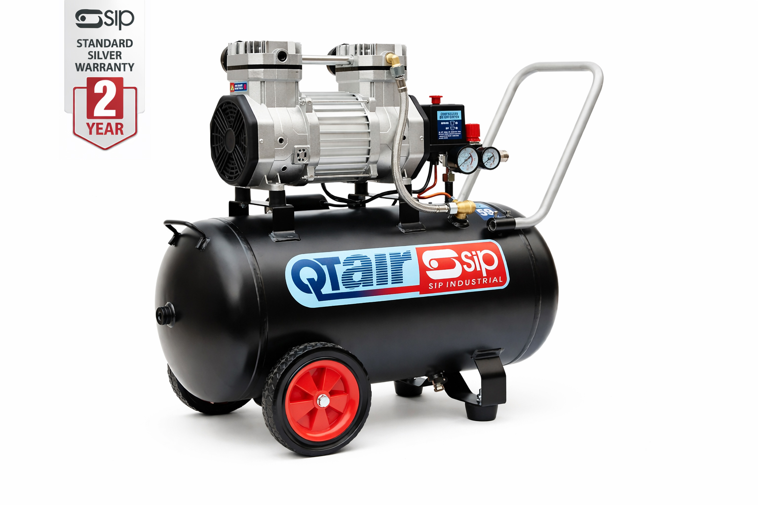 The SIP QT AIR DD 1.5hp 50ltr is a versatile, ultra-quiet, and low-maintenance air compressor designed for everyday use in workshops, home garages, and mobile applications. Its slow-running 4-pole motor pump unit delivers longer life performance while maintaining a consistent and reliable airflow.