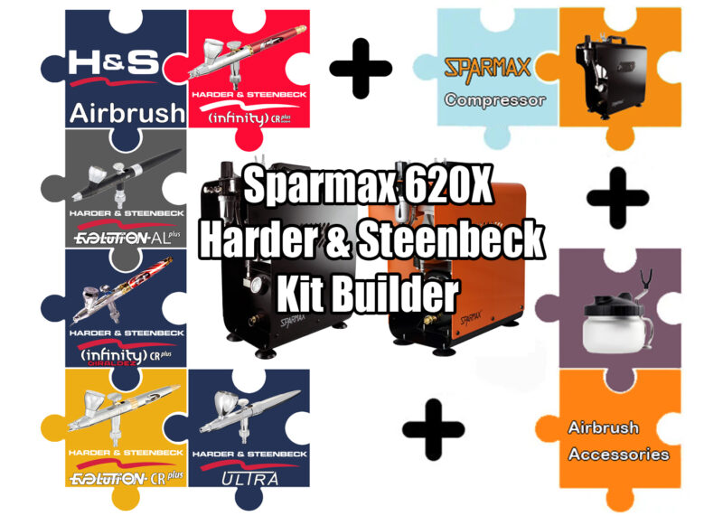 This contains the Sparmax 620X twin piston compressor and your choice of Harder & Steenbeck airbrush.