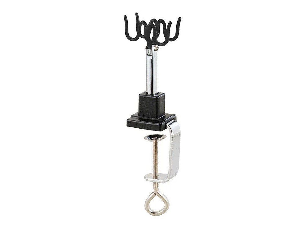The stand is suitable for clamping onto surfaces up to 65 mm in depth, making it a practical addition to any workbench or hobby setup.