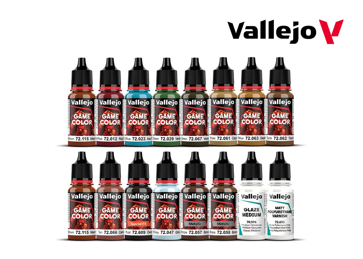 Vallejo’s experts have carefully selected these sixteen colors, including two auxiliary tones and one rust effect, to round out your painting palette.