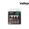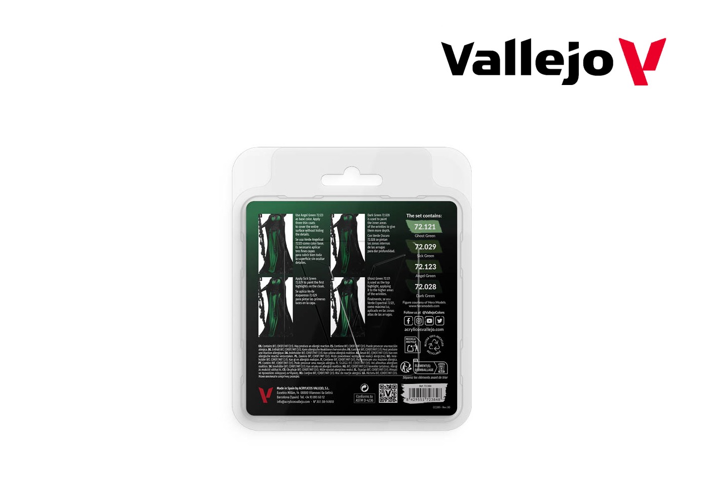 This Vallejo Game Color set features four green shades with a neutral tonality and great chromatic richness. It includes a versatile collection with a base color, a shadow color, and two highlighting shades, perfect for achieving balanced and vibrant green effects on your miniatures.