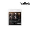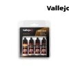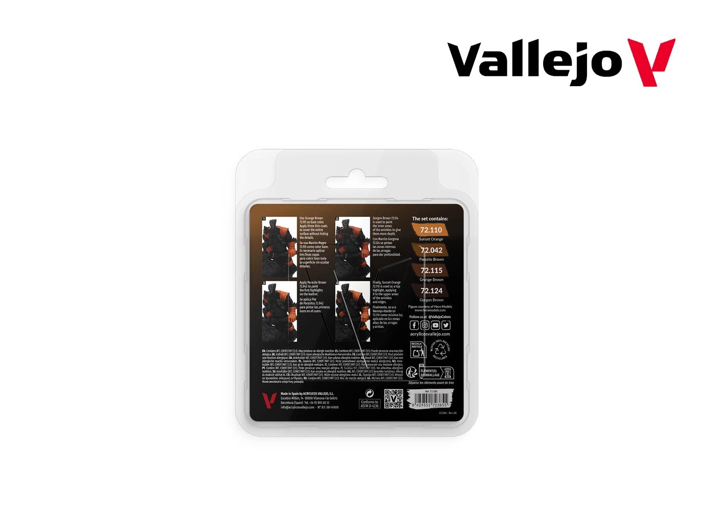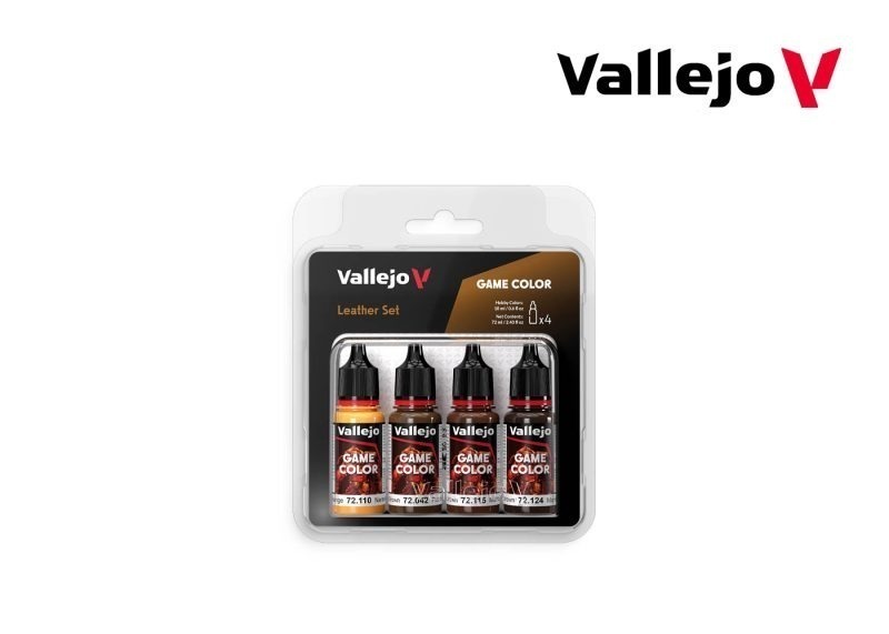 This Vallejo Game Color set features four brown shades specifically designed for painting all types of leather elements in warm tones. It includes a versatile collection with a base color, a shadow color, and two highlighting shades, perfect for adding depth and realism to your leather textures.