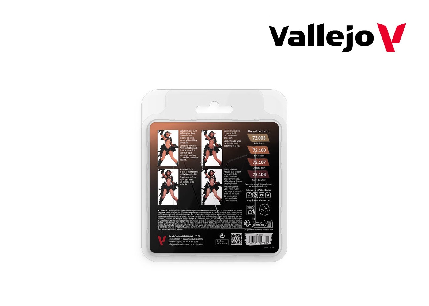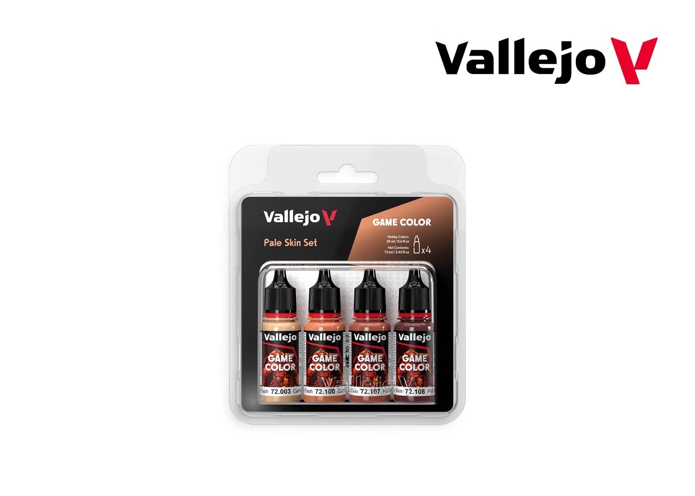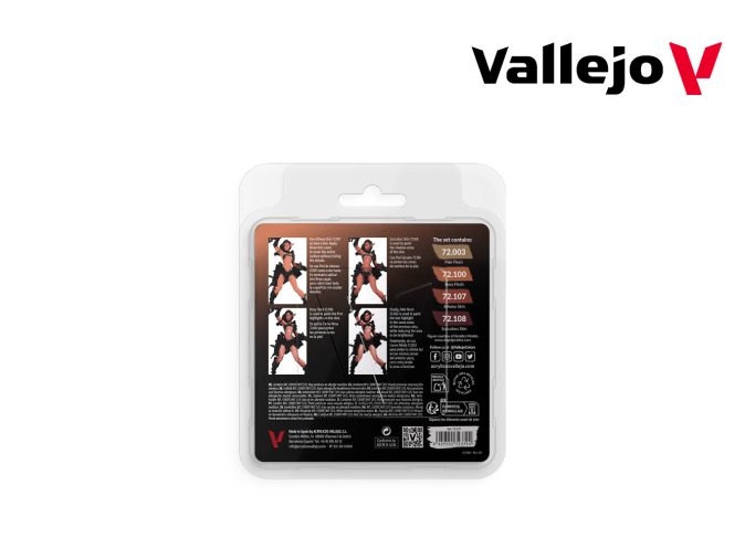 This Vallejo Game Color set features four specially chosen shades for painting pale and delicate skin. It includes a versatile collection with a base color, a shadow color, and two highlighting shades, allowing you to create nuanced and realistic pale skin effects on your miniatures.